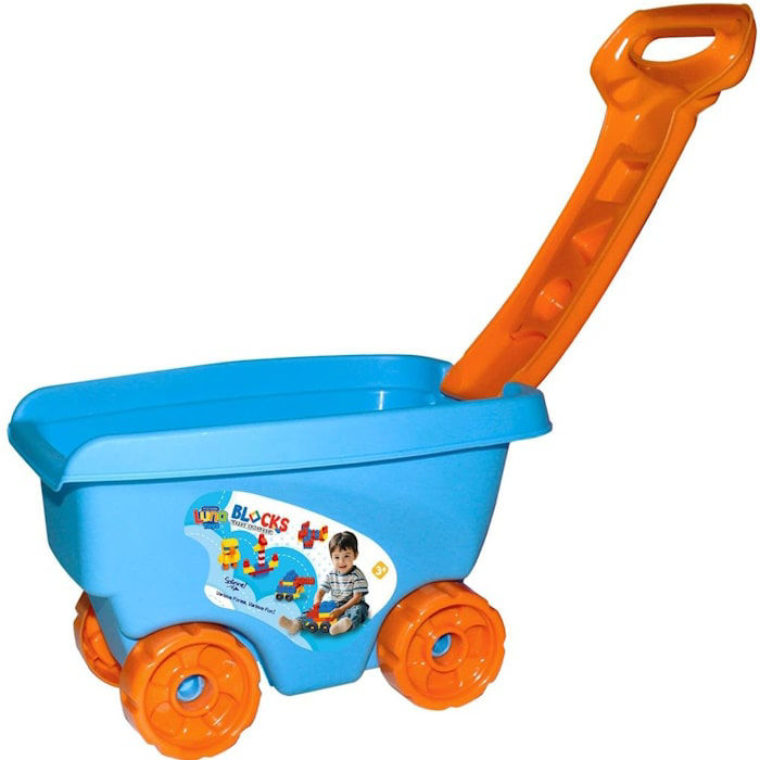 Σχεδιασμένα με ασφάλεια και φαντασία, τα τουβλάκια βοηθούν τα παιδιά να αναπτύξουν τη λεπτή κινητικότητα, τη λογική σκέψη και τη δημιουργικότητα, ενώ το καρότσι ενισχύει το διαδραστικό παιχνίδι και την ανεξαρτησία τους. Το μπλε χρώμα δίνει μια ζωηρή πινελιά που τραβά το βλέμμα και κάνει το παιχνίδι ακόμα πιο ευχάριστο.