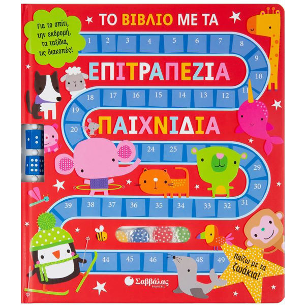 Στο βιβλίο θα βρείτε όλα όσα θα χρειαστείτε για να παίξετε τα επιτραπέζια παιχνίδια: 5 παιχνίδια • 2 ζάρια • 16 πιόνια. Ένα πρωτότυπο και ψυχαγωγικό βιβλίο που ενθαρρύνει το ομαδικό παιχνίδι, ενώ βοηθάει το παιδί να αναπτύξει τις κινητικές του δεξιότητες και να εξασκηθεί στο μέτρημα.