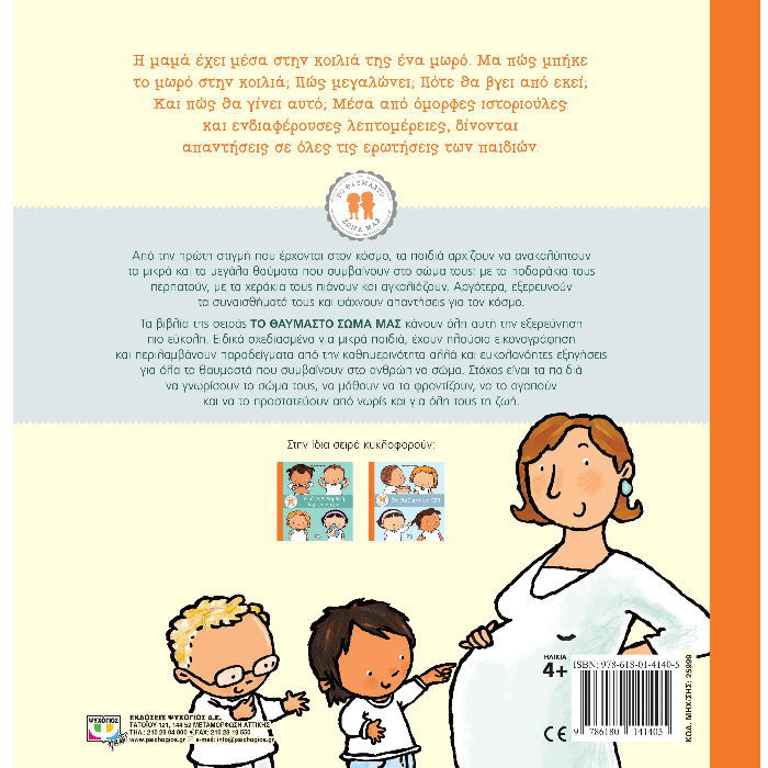 Τα βιβλία της σειράς ΤΟ ΘΑΥΜΑΣΤΟ ΣΩΜΑ ΜΑΣ κάνουν όλη αυτή την εξερεύνηση πιο εύκολη. Ειδικά σχεδιασμένα για μικρά παιδιά, έχουν πλούσια εικονογράφηση και περιλαμβάνουν παραδείγματα από την καθημερινότητα αλλά και ευκολονόητες εξηγήσεις για όλα τα θαυμαστά που συμβαίνουν στο ανθρώπινο σώμα. Στόχος είναι τα παιδιά να γνωρίσουν το σώμα τους, να μάθουν να το φροντίζουν, να το αγαπούν και να το προστατεύουν από νωρίς και για όλη τους τη ζωή.