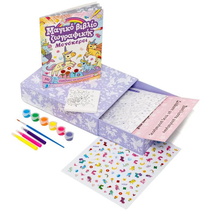 Άνοιξε αυτό το μαγικό συρτάρι και απόλαυσε ώρες καλλιτεχνικής δημιουργίας! Μέσα θα βρεις ένα βιβλίο ζωγραφικής, πολλά αποσπώμενα κομμάτια για παιχνίδι και κατασκευές, απίθανα αυτοκόλλητα, νερομπογιές, μαρκαδοράκια και έναν μίνι καμβά για να στολίσεις τον χώρο σου ή να τον προσφέρεις ως δώρο!