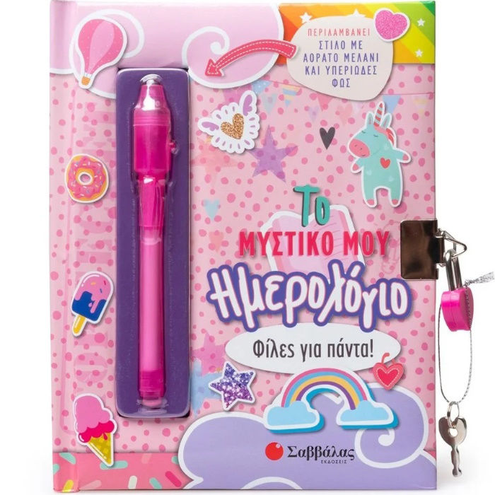Ξέρεις τι είναι αυτό που κάνει τόσο διασκεδαστικό αυτό το Μυστικό Ημερολόγιο; Το αόρατο μελάνι του στιλό που συνοδεύει αυτή τη φανταστική έκδοση. Όταν θέλεις να γράψεις κάτι άκρως απόρρητο, μπορείς να χρησιμοποιείς το μαγικό σου στιλό και το μήνυμα θα αποκαλύπτεται μόνο... με υπεριώδες φως! Το ημερολόγιο αυτό είναι το προσωπικό σου βιβλίο, όπου μπορείς να φυλάς πολύτιμες πληροφορίες, να καταγράφεις τις σκέψεις σου και όμορφες αναμνήσεις και να παίζεις επινοώντας κρυπτογραφημένα μηνύματα σαν επαγγελματίας κατάσκοπος!