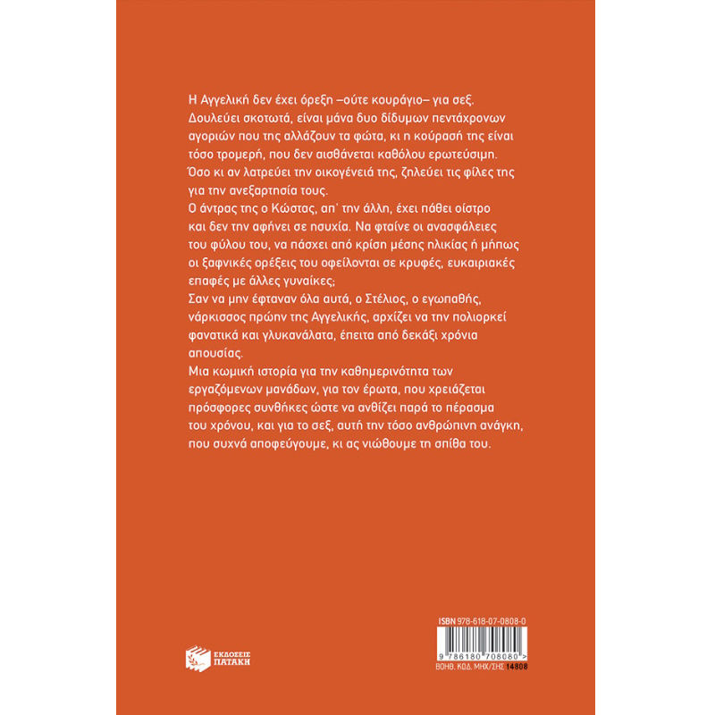 Η Αγγελική δεν έχει όρεξη –ούτε κουράγιο– για σεξ. Δουλεύει σκοτωτά, είναι μάνα δυο δίδυμων πεντάχρονων αγοριών που της αλλάζουν τα φώτα, κι η κούρασή της είναι τόσο τρομερή, που δεν αισθάνεται καθόλου ερωτεύσιμη. Όσο κι αν λατρεύει την οικογένειά της, ζηλεύει τις φίλες της για την ανεξαρτησία τους.