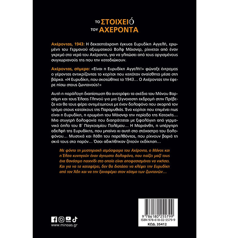 Με φόντο τη μυστηριακή ατμόσφαιρα του Αχέροντα, ο Μάνος και η Έλσα κυνηγούν έναν άγνωστο δολοφόνο, που παίζει μαζί τους ένα θανάσιμο παιχνίδι στο οποίο είναι αποφασισμένος να νικήσει. Και για να τα καταφέρει, δεν θα διστάσει να κλέψει την Ευρυδίκη από τον Άδη και να την ξαναφέρει στον κόσμο των ζωντανών…