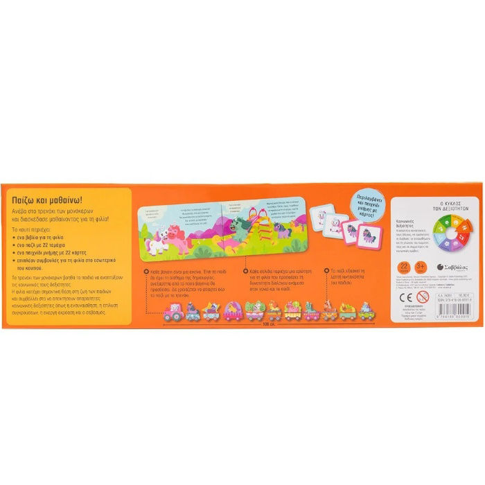 Το «Τρενάκι των μονόκερων» βοηθά τα παιδιά να αναπτύξουν τις κοινωνικές τους δεξιότητες. Η φιλία κατέχει σημαντική θέση στη ζωή των παιδιών και συμβάλλει στο να αποκτήσουν απαραίτητες κοινωνικές δεξιότητες όπως η ενσυναίσθηση, η επίλυση συγκρούσεων, η ενεργή ακρόαση και ο σεβασμός. Κάθε σελίδα του βιβλίου περιέχει μια ερώτηση για τη φιλία που προσφέρει τη δυνατότητα διαλόγου ανάμεσα στον γονιό και το παιδί. Το παζλ εξασκεί τη λεπτή κινητικότητα του παιδιού και προκαλεί το αίσθημα της δημιουργίας. Το παιχνίδι με κάρτες βοηθά το παιδί να εξασκήσει τη μνήμη και την παρατηρητικότητά του.