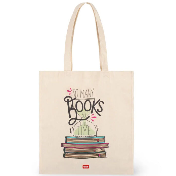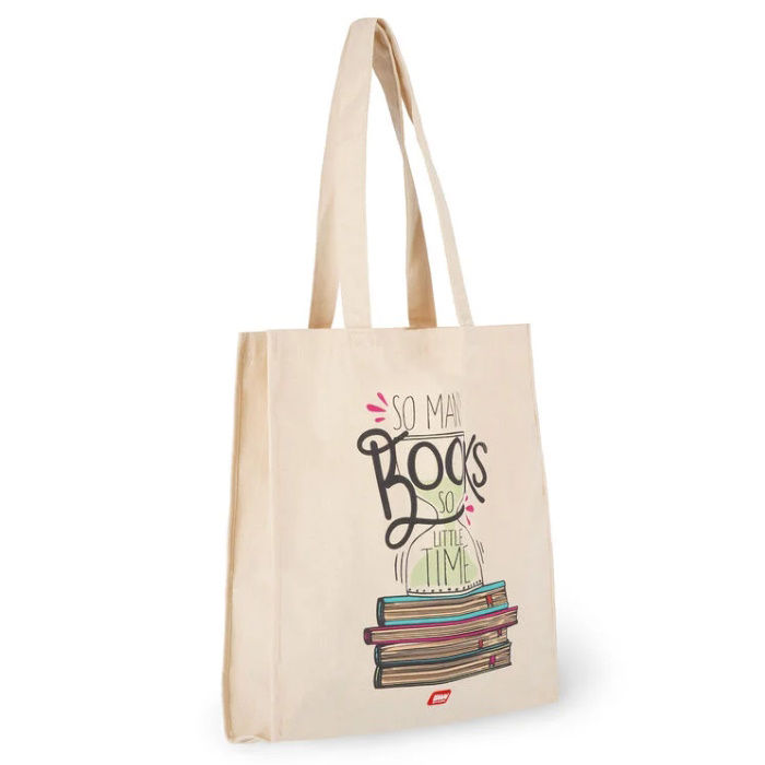 Η βαμβακερή tote bag Legami Book Lover είναι σχεδιασμένη για όσους αγαπούν να έχουν τα βιβλία τους πάντα μαζί. Κατασκευασμένη από 100% βαμβάκι υψηλής ποιότητας, συνδυάζει ανθεκτικότητα, κομψότητα και οικολογική συνείδηση. Το ευρύχωρο εσωτερικό της χωρά άνετα βιβλία, τετράδια ή καθημερινά αντικείμενα, ενώ οι διπλοί ιμάντες ώμου προσφέρουν άνεση και σταθερότητα στη μεταφορά.