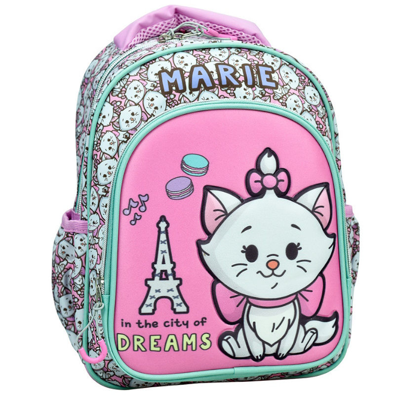 Σχολική τσάντα πλάτης, κατάλληλη για παιδιά νηπιαγωγείου της εταιρίας Gim, σε πράσινο χρώμα με το αγαπημένο σχέδιο των παιδιών Marie