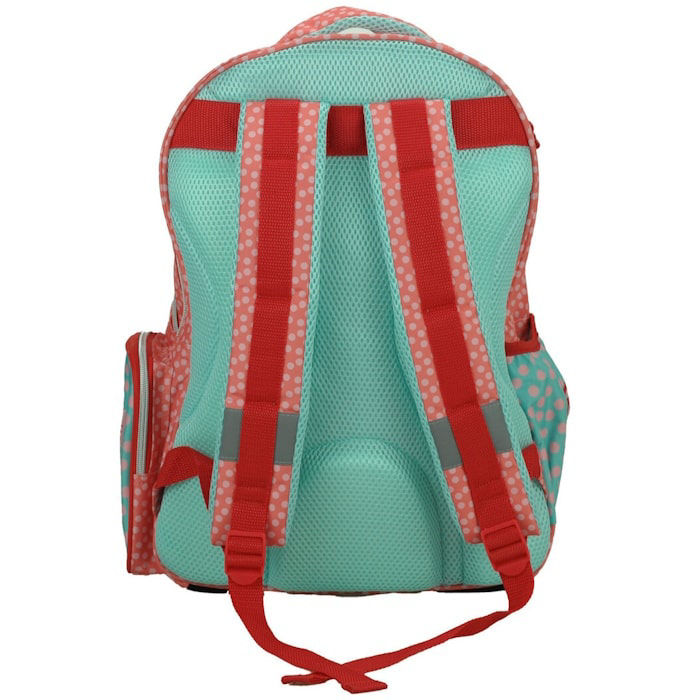 Διαθέτει δύο μεγάλες θήκες με φερμουάρ, πλαϊνές θήκες για παγούρι, ενισχυμένη πλάτη και βάση, καθώς και ρυθμιζόμενους εργονομικούς ιμάντες για άνετη καθημερινή μεταφορά.