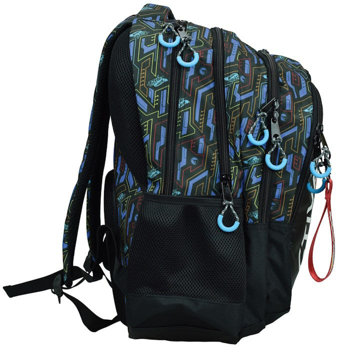 Διαθέτει δύο μεγάλες θήκες με φερμουάρ, πλαϊνές θήκες για παγούρι, ενισχυμένη πλάτη και βάση, καθώς και ρυθμιζόμενους εργονομικούς ιμάντες για άνετη καθημερινή μεταφορά. Ιδανικό για μαθητές δημοτικού που αναζητούν μια τσάντα με χαρακτήρα και αντοχή.