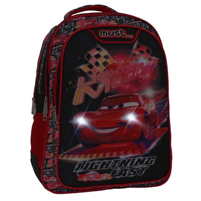 Πρακτική και με υπέροχο σχεδιασμό, η Σχολική Τσάντα Πλάτης Δημοτικού Disney Cars Lighting Fast με την ποιότητα Must ξεχωρίζει για τα LED φωτάκια που λειτουργούν μετά από απαλό χτύπημα και εξασφαλίζει την καθημερινή ασφαλή, άνετη και εύκολη μεταφορά όλων των απαραίτητων σχολικών ειδών.