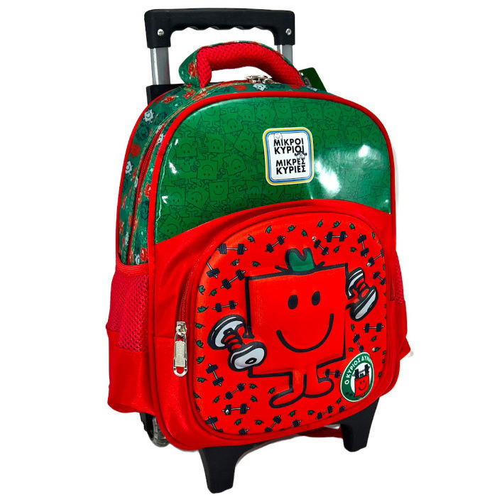 Η τσάντα τρόλεϋ νηπίου Μικροί Κύριοι Μικρές Κυρίες – Ο Κύριος Δυνατός είναι η ιδανική επιλογή για παιδιά που αγαπούν τους διάσημους ήρωες των αγαπημένων βιβλίων. Με έντονα χρώματα και τον Κύριο Δυνατό να πρωταγωνιστεί στο μπροστινό σχέδιο, η τσάντα δίνει χαρά και αυτοπεποίθηση στους μικρούς μαθητές.