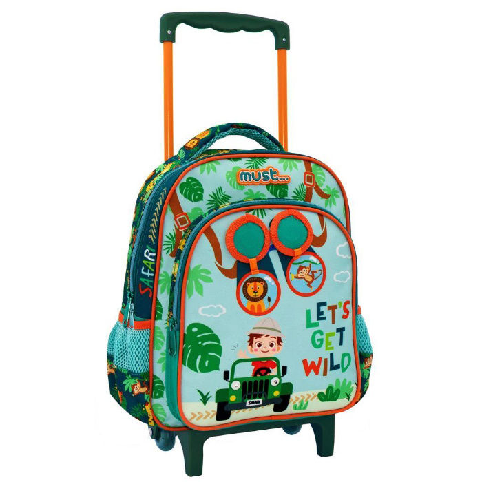 Η Σχολική Τσάντα Τρόλεϋ Νηπίου Must Safari με 2 θήκες ξεχωρίζει για το υπέροχο σχέδιο με τον μικρό εξερευνητή, το τζιπάκι με τα led φώτα (λειτουργούν μετά από ένα απαλό χτύπημα) και κιάλια pull up με μαγνήτη! Ιδανική σχολική τσάντα προσχολικής ηλικίας που συνδυάζει σακίδιο πλάτης και τρόλεϊ μαζί για να μεταφέρει με ασφάλεια, άνεση και ευκολία όλα τα απαραίτητα σχολικά είδη στον παιδικό σταθμό και το νηπιαγωγείο.
