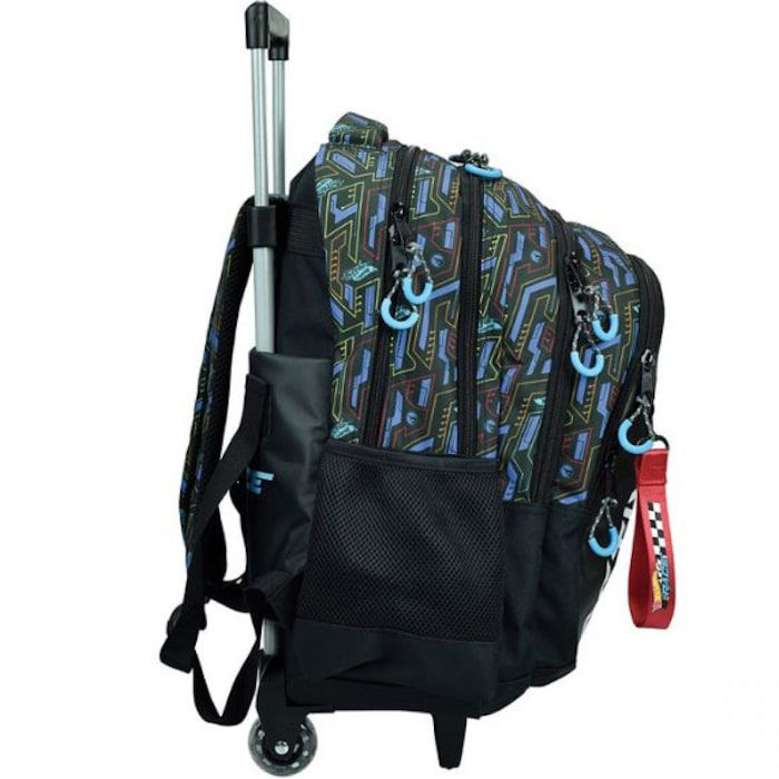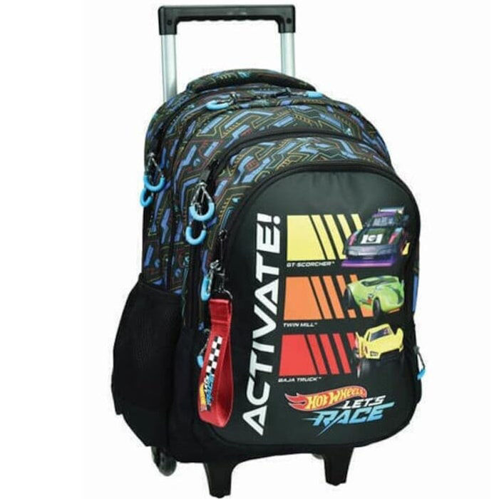 Γιατί συνδυάζει πρακτικότητα και άνεση στη μεταφορά με ένα εντυπωσιακό Hot Wheels design, κάνοντάς την ιδανική για παιδιά που θέλουν να ξεχωρίζουν στο σχολείο.αχύτητας. Διαθέτει δύο κεντρικές θήκες για βιβλία και τετράδια, μία μπροστινή τσέπη για μικροαντικείμενα και ανθεκτικό μηχανισμό τρόλεϋ με στιβαρούς τροχούς για εύκολη μεταφορά. Το δυναμικό σχέδιο με τα Hot Wheels δίνει στυλ και ενθουσιάζει κάθε μαθητή που αγαπά τα αυτοκίνητα και την ταχύτητα.