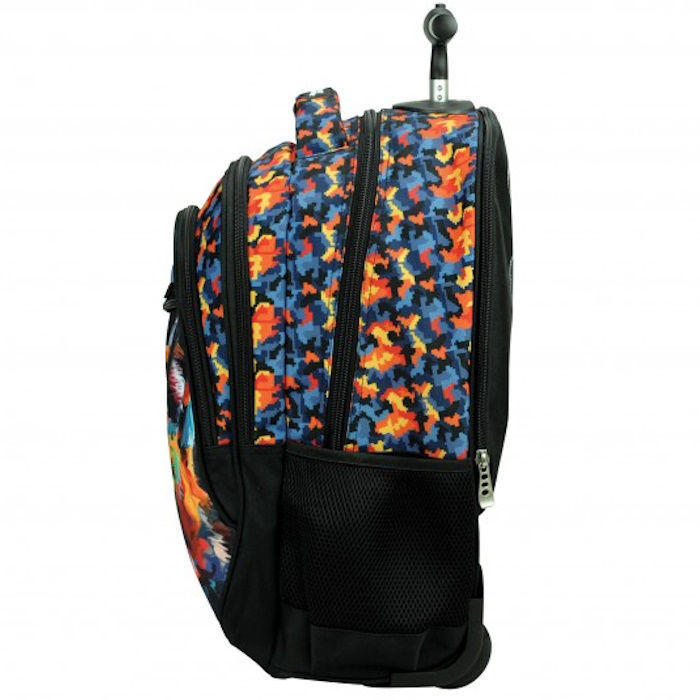 Η τσάντα τρόλεϋ No Fear Colored Wolf ξεχωρίζει για το εντυπωσιακό σχέδιο με τον πολύχρωμο λύκο, που χαρίζει μοναδικό στυλ σε κάθε μαθητή. Διαθέτει δύο ευρύχωρες κεντρικές θήκες για βιβλία και τετράδια, μπροστινή τσέπη για μικροαντικείμενα και ανθεκτικό μηχανισμό τρόλεϋ με στιβαρούς τροχούς για άνετη μεταφορά. Οι ενισχυμένοι εργονομικοί ιμάντες πλάτης επιτρέπουν να χρησιμοποιηθεί και ως σακίδιο, προσφέροντας ευκολία και άνεση σε κάθε διαδρομή. Η κατασκευή της από ποιοτικά υλικά εξασφαλίζει αντοχή και αξιοπιστία για όλη τη σχολική χρονιά.