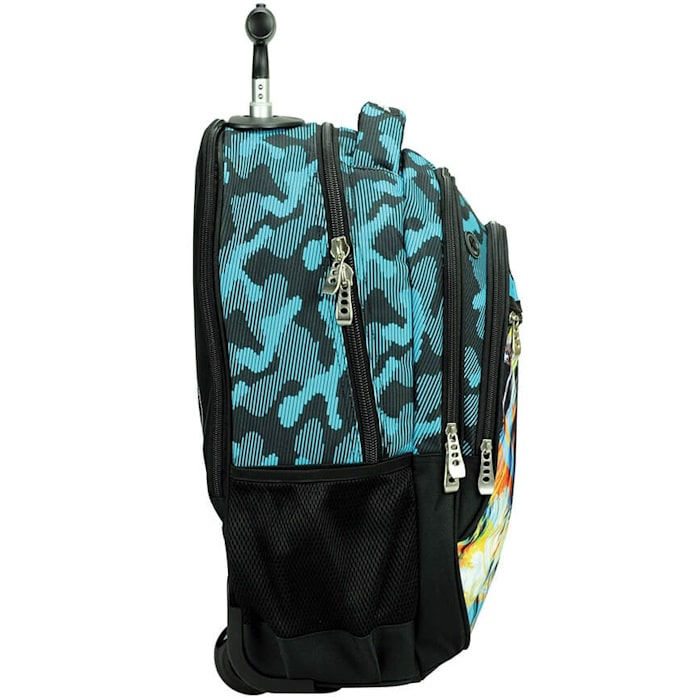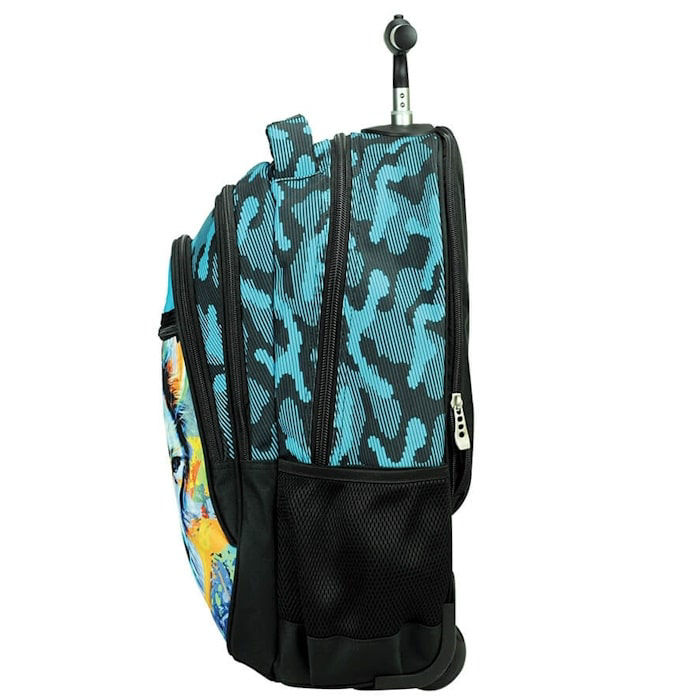 Η τσάντα τρόλεϋ No Fear Fluo Lion 348-45074 είναι σχεδιασμένη για μαθητές που θέλουν να ξεχωρίζουν με στυλ αλλά και να απολαμβάνουν πρακτικότητα στην καθημερινότητα. Διαθέτει δύο μεγάλες κεντρικές θήκες για βιβλία και τετράδια, μία μπροστινή τσέπη για μικροαντικείμενα και πλευρικές θήκες για παγούρι, εξασφαλίζοντας άριστη οργάνωση. Ο ανθεκτικός τρόλεϋ μηχανισμός με στιβαρούς τροχούς σιλικόνης και ρυθμιζόμενη λαβή κάνει τη μεταφορά εύκολη και άνετη, ενώ οι ενισχυμένοι εργονομικοί ιμάντες πλάτης προσφέρουν εναλλακτικά τη δυνατότητα χρήσης ως σακίδιο. Το μοναδικό φλουό σχέδιο με το λιοντάρι χαρίζει ενέργεια, δύναμη και χαρακτήρα, κάνοντάς την τσάντα που τραβά όλα τα βλέμματα.