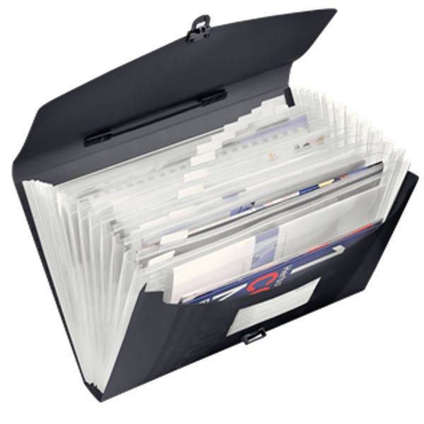 Τσάντα 12 θέσεων Esselte P.P. VIVIDA. 12 επεκτάσιμα διαμερίσματα με και ευρετήριο. Δαφανές υλικό 0,67 mm . Υψηλή χωρητικότητα. Για την οργάνωση και την αποθήκευση εγγράφων.