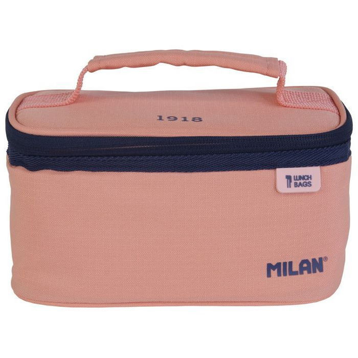 Μικρή, άνετη και διαχειρίσιμη ισοθερμική τσαντούλα τροφίμων. Σειρά 1918, ροζ με μπλε λεπτομέρειες. Εμπνευσμένο από τα αυθεντικά χρώματα και το σχέδιο των γόμων MILAN. Περιέχει ένα ορθογώνιο δοχείο με ροζ καπάκι. Θερμομονωμένο εσωτερικό (ζεστό/κρύο) για καλύτερη συντήρηση των τροφίμων. Ολικό άνοιγμα για καλύτερη προσβασιμότητα και καθαρισμό. Πρακτική εσωτερική τσέπη με φερμουάρ και επάνω λαβή. Εξωτερικό ύφασμα 'ripstop': ελαφρύ και ανθεκτικό το σκίσιμο. Σύνθεση υφάσματος: πολυεστερική εξωτερική και ισοθερμική εσωτερική επένδυση (PEVA). Διαστάσεις: 22 x 12,5 x 12 cm. Χωρητικότητα: 1,5 λίτρα. Χωρητικότητα: 5 λίτρα.