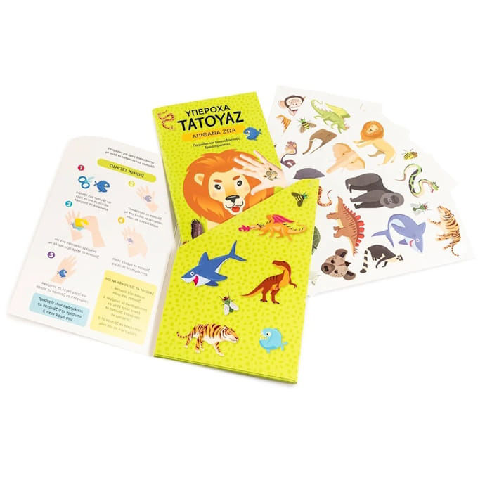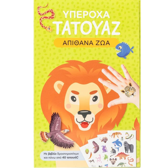 Υπέροχα τατουάζ: Απίθανα ζώα από τις Εκδόσεις Σαββάλας. Δημιουργικό βιβλίο δραστηριοτήτων με ζωγραφική και προσωρινά τατουάζ. Αγοράστε το για ώρες παιχνιδιού!