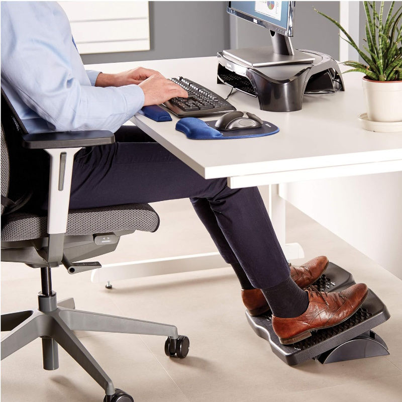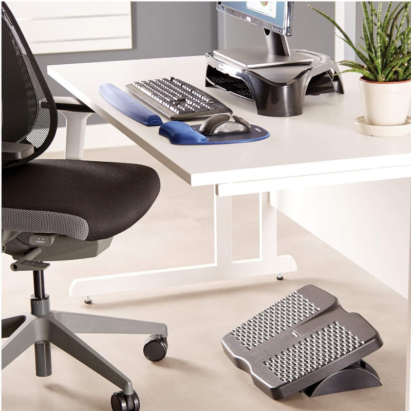 Το υποπόδιο Fellowes Refresh με αεριζόμενη πλατφόρμα επιτρέπει στον αέρα να κυκλοφορεί γύρω από τα πόδια σας. Τα δύο μεγάλα πάνελ ενθαρρύνουν τη σωστή τοποθέτηση των ποδιών αποτρέποντας την ενόχληση της πλάτης και των ποδιών. Το υποπόδιο έχει δύο ρυθμίσεις ύψους με γωνία κλίσης έως 22 μοίρες.