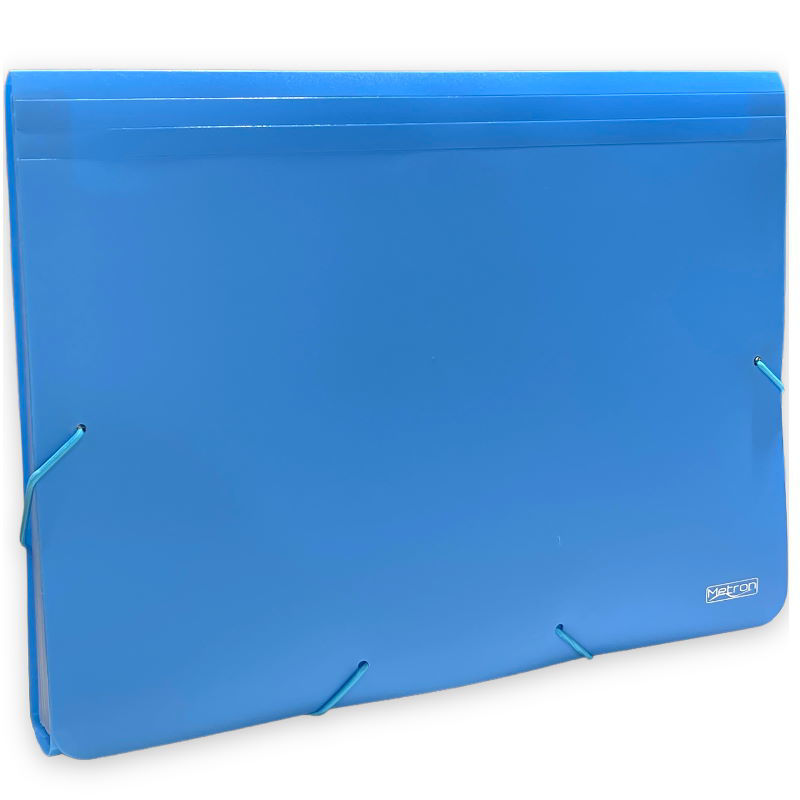 Γραμματιοθήκη Α4 Metron, ντοσιέ τύπου φυσαρμόνικα 13 θέσεων και κλείσιμο με λάστιχα. Κατάλληλη για αρχειοθέτηση εγγράφων, τιμολογίων, αποδείξεων, ιατρικών εξετάσεων κ.α.