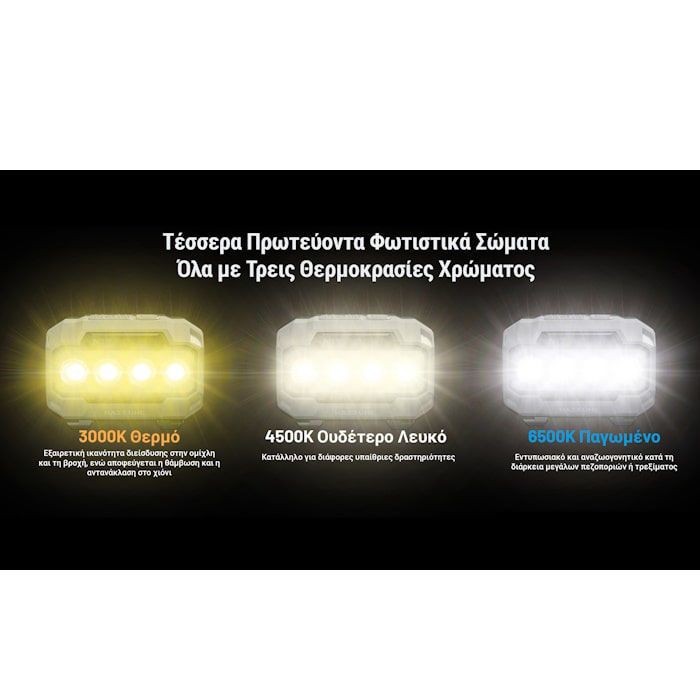Η εργονομική σχεδίαση, το βάρος μόλις 56g (χωρίς μπαταρίες), η αντοχή σε νερό (IP68) και πτώσεις έως 1 μέτρο, τον καθιστούν ιδανικό για κατασκήνωση, πεζοπορία, εργασία ή χρήση στην πόλη. Επιπλέον, διαθέτει κόκκινο φως για διατήρηση νυχτερινής όρασης και λειτουργίες SOS / Beacon για επείγουσες καταστάσεις.