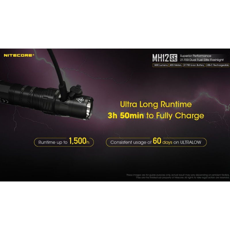 Φακός χειρός LED της NiteCore, κατάλληλος για χρήση σε δραστηριότητες όπως κατασκήνωση, πεζοπορία, ποδηλασία, κυνήγι, ψάρεμα ή κατά διάρκεια των εργασιών όπως επισκευή στο σπίτι. Είναι επαναφορτιζόμενος, λειτουργεί με μπαταρία 21700 (περιλαμβάνεται) και τροφοδοτείται μέσω της θύρας USB. Επιπλέον είναι υβριδικός και μπορεί να λειτουργήσει και με διαφορετικού τύπου μπαταρία. Έχει ισχυρή ένταση φωτισμού που φτάνει έως 1800lm και μπορεί να φωτίσει έως 405 μέτρα. Είναι ανθεκτικό στο νερό, καθώς διαθέτει πιστοποίηση αδιαβροχοποίησης IP68. Έυκολο στη χρήση, καθώς έχει ελαφριά κατασκευή που ζυγίζει 80gr και έχει μήκος 14.1cm.