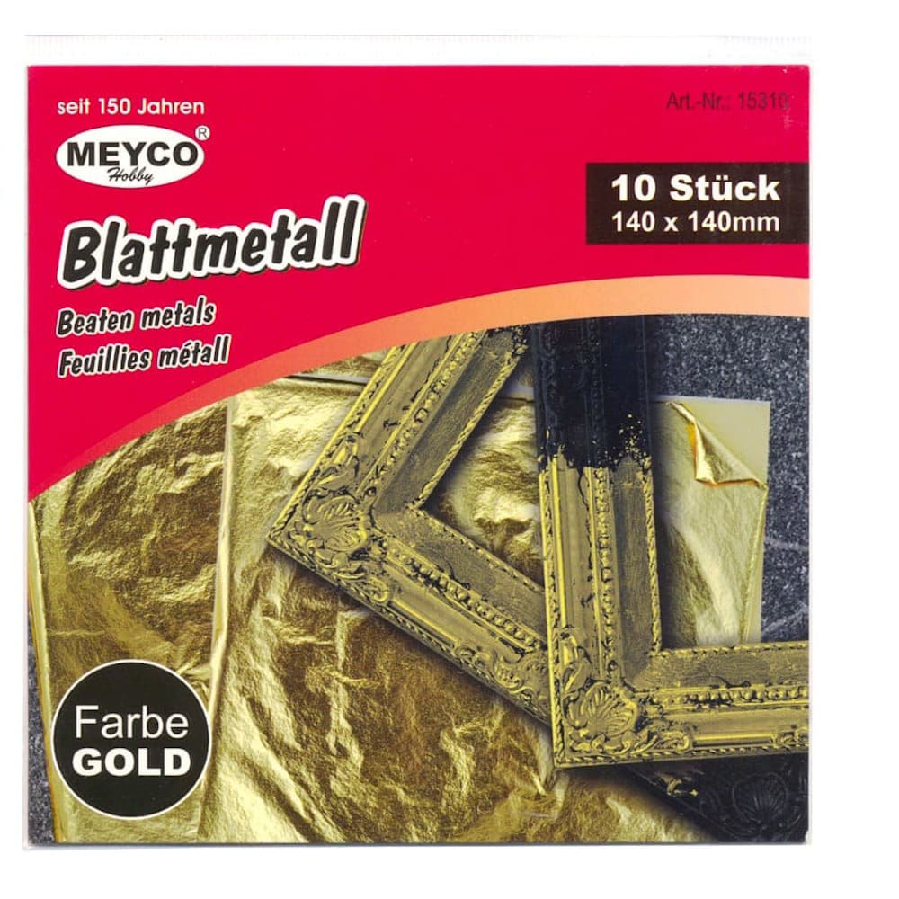 Φύλλα χρυσού imitation Meyco 14 x 14 cm για διακόσμηση, χειροτεχνίες και καλλιτεχνικές εφαρμογές. Ιδανικά για λαμπερό αποτέλεσμα με ευκολία.