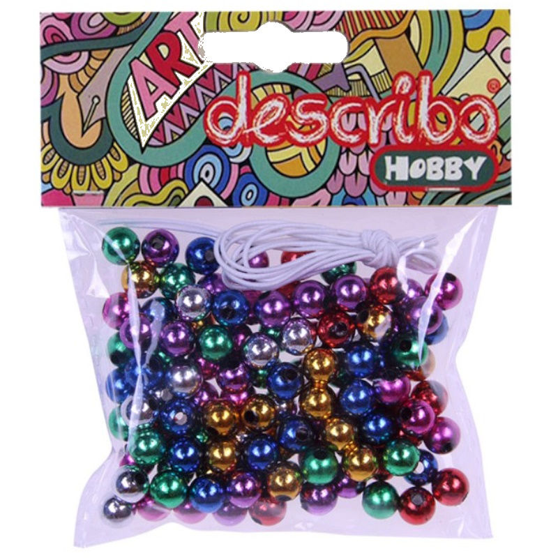 Χάντρες μεταλλικές Describo 8mm χρωματιστές με τρύπα και κορδόνι ελαστικό DES-0060