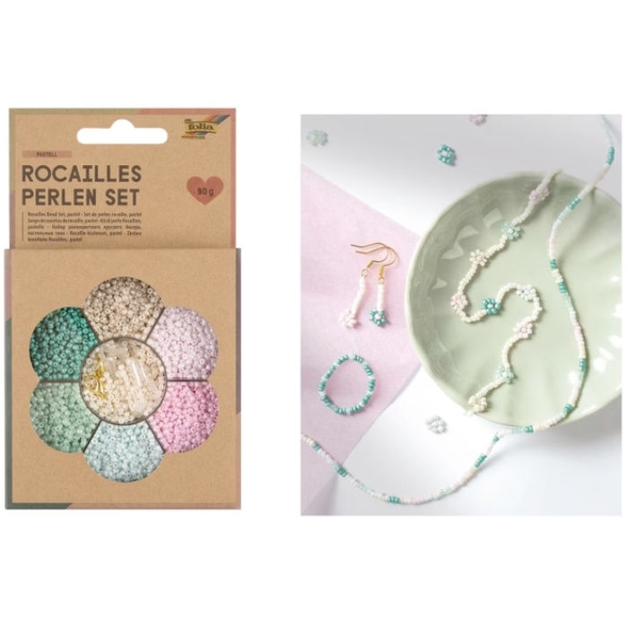 Χάντρες σετ 90gr Folia ροζ - σιελ 19312908