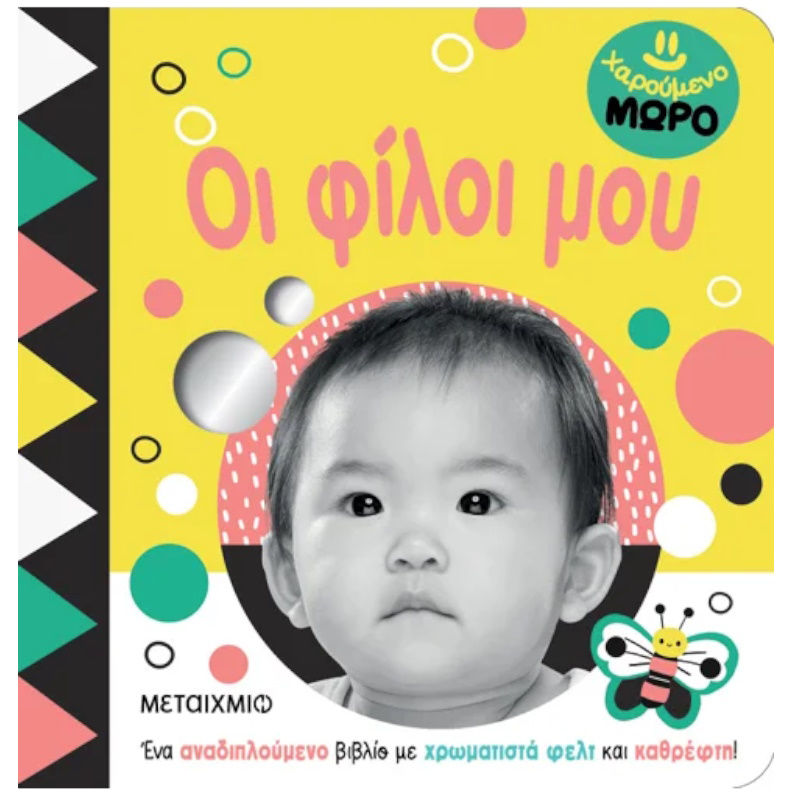 Στα μωρά αρέσει πολύ να κάθονται μπρούμυτα. Και τρελαίνονται να βλέπουν άλλα μωρά! Στήστε το βιβλίο στο πάτωμα μπροστά στο μικρό σας και αφήστε το μπρούμυτα να παρατηρήσει τις εικόνες έντονων χρωματικών αντιθέσεων, να εξερευνήσει με την αφή τα χρωματιστά φελτ και να ανακαλύψει τον καθρέφτη στο τέλος του βιβλίου.