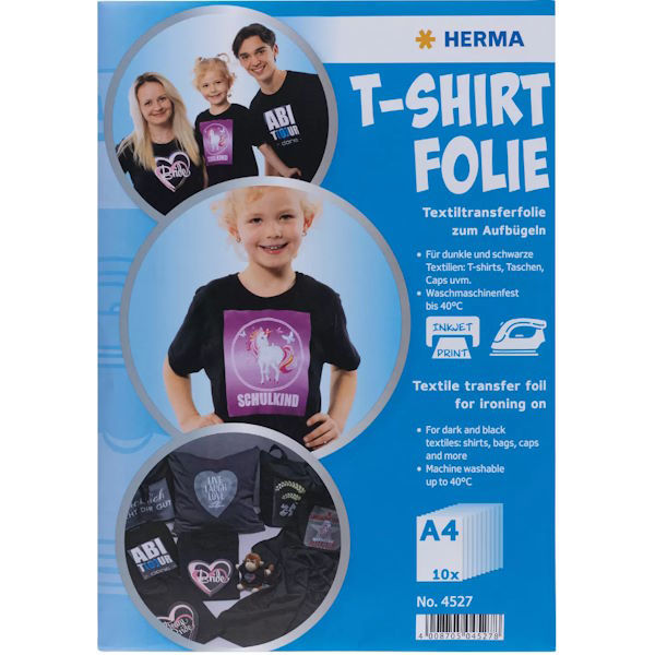 HERMA σιδερότυπο για σκουρόχρωμα υφάσματα που μπορείτε να σχεδιάσετε από μια μεγάλη ποικιλία διαφορετικών σχεδίων ή ανεβάστε τις δικές σας εικόνες - δωρεάν, με βοηθό σχεδίασης και χωρίς εγκατάσταση λογισμικού απευθείας στο πρόγραμμα περιήγησης. Στη συνέχεια, απλά εκτυπώστε τα με ανεστραμμένο, κόψτε τα, σιδερώστε τα και είναι έτοιμα. Τα υφάσματα πλένονται μέχρι τους 40°C και μπορούν επίσης να σιδερωθούν, ώστε όλοι να απολαμβάνουν το μοναδικό τους κομμάτι για μεγάλο χρονικό διάστημα.