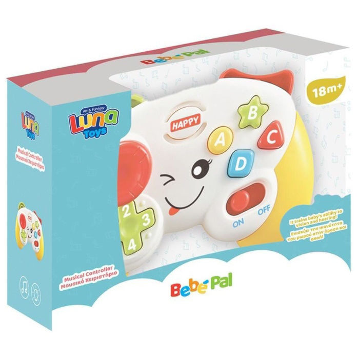 Παιχνίδι-χειριστήριο από την εταιρεία Luna, το οποίο έχει ως στόχο να βοηθήσει το παιδί να αναπτύξει τις αισθήσεις και τις κινητικές του ικανότητες, καθώς και τον συντονισμό χεριού ματιού. Πατώντας κουμπάκια μαθαίνει την έννοια της δράσης-αντίδρασης, ενώ παράλληλα καλλιεργούνται η φαντασία και η δημιουργικότητά του. Διαθέτει λειτουργία μουσικής και φως, που θα διασκεδάσουν και θα κρατήσουν το μωρό απασχολημένο, συμβάλλοντας ταυτόχρονα στην αντίληψη του περιβάλλοντος γύρω του.
