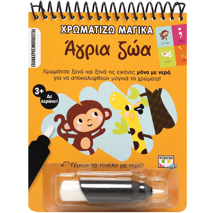 1. Ξεβίδωσε το καπάκι από το πινέλο.2. Γέμισε με νερό.3. Βίδωσε το καπάκι και ξεκίνα να χρωματίζεις!4. Άφησε την εικόνα να στεγνώσει και χρωμάτισε ξανά!