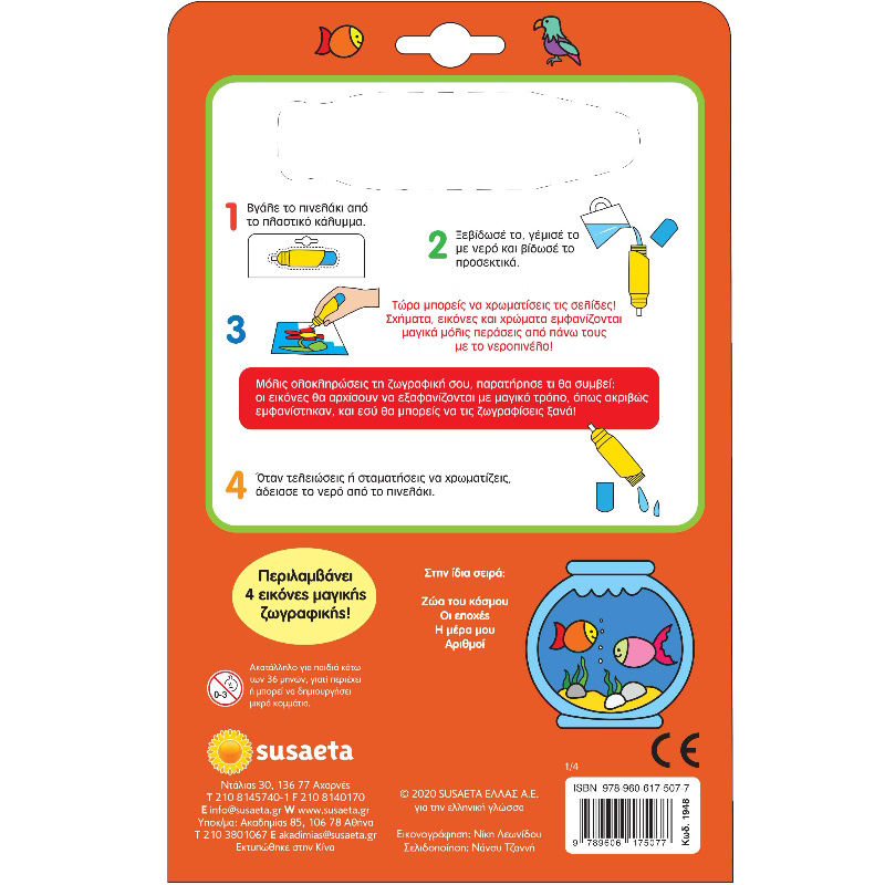 Γέμισε το μαγικό πινέλο με νερό και δες τις εικόνες των βιβλίων να μεταμορφώνονται στις πιο πολύχρωμες και χαρούμενες ζωγραφιές. Άφησέ τες να στεγνώσουν για να τις χρωματίσεις ξανά και ξανά!