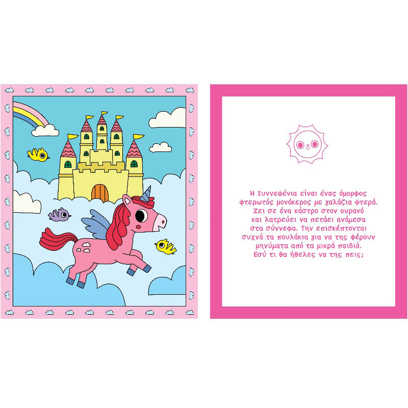 Γέμισε το μαγικό πινέλο με νερό και δες τις εικόνες του βιβλίου να μεταμορφώνονται στις πιο πολύχρωμες και χαρούμενες ζωγραφιές. Άφησέ τες να στεγνώσουν για να τις χρωματίσεις ξανά και ξανά!