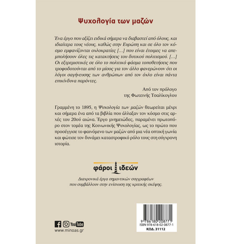 Γραμμένη το 1895, η Ψυχολογία των μαζών θεωρείται μέχρι και σήμερα ένα από τα βιβλία που άλλαξαν τον κόσμο στις αρχές του 20ού αιώνα. Έργο μνημειώδες, παραμένει πρωτοπόρο στον τομέα της Κοινωνικής Ψυχολογίας, ως το πρώτο που προσέγγισε το φαινόμενο των μαζών από μια νέα οπτική γωνία και φώτισε τον δυνάμει καταστροφικό ρόλο τους στη σύγχρονη ιστορία.