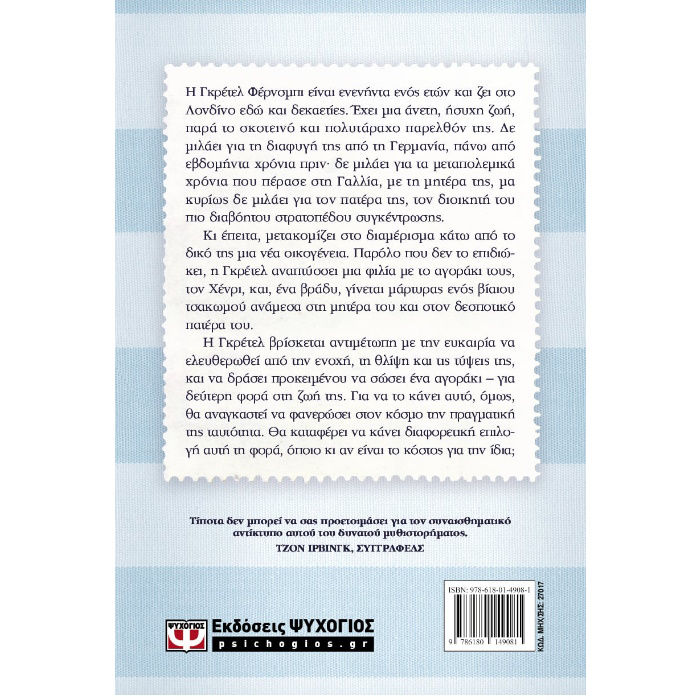 Η Γκρέτελ Φέρνσμπι είναι ενενήντα ενός ετών και ζει στο Λονδίνο εδώ και δεκαετίες. Έχει μια άνετη, ήσυχη ζωή, παρά το σκοτεινό και πολυτάραχο παρελθόν της. Δε μιλάει για τη διαφυγή της από τη Γερμανία, πάνω από εβδομήντα χρόνια πριν· δε μιλάει για τα μεταπολεμικά χρόνια που πέρασε στη Γαλλία, με τη μητέρα της, μα κυρίως δε μιλάει για τον πατέρα της, τον διοικητή του πιο διαβόητου στρατοπέδου συγκέντρωσης.