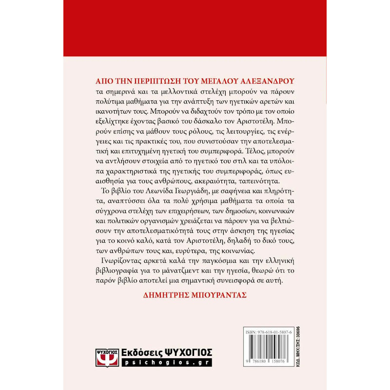 Το βιβλίο του Λεωνίδα Γεωργιάδη, με σαφήνεια και πληρότητα, αναπτύσσει όλα τα πολύ χρήσιμα μαθήματα τα οποία τα σύγχρονα στελέχη των επιχειρήσεων, των δημοσίων, κοινωνικών και πολιτικών οργανισμών χρειάζεται να πάρουν για να βελτιώσουν την αποτελεσματικότητά τους στην άσκηση της ηγεσίας για το κοινό καλό, κατά τον Αριστοτέλη, δηλαδή το δικό τους, των ανθρώπων τους και, ευρύτερα, της κοινωνίας.