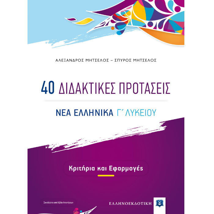 Το νέο εκπαιδευτικό βιβλίο 40 Διδακτικές Προτάσεις – ΝΕΑ ΕΛΛΗΝΙΚΑ Γ΄ Λυκείου συμπληρώνει την έκδοση ΝΕΑ ΕΛΛΗΝΙΚΑ για την Γ΄ Λυκείου – Ενιαία Εξέταση Νεοελληνικής Γλώσσας και Λογοτεχνίας. Και τα δύο βιβλία συγκροτούν μια ολοκληρωμένη πρόταση διδασκαλίας και μελέτης του μαθήματος και συμβάλλουν στην αποτελεσματική προετοιμασία των μαθητών/-τριών για τις Πανελλαδικές Εξετάσεις.
