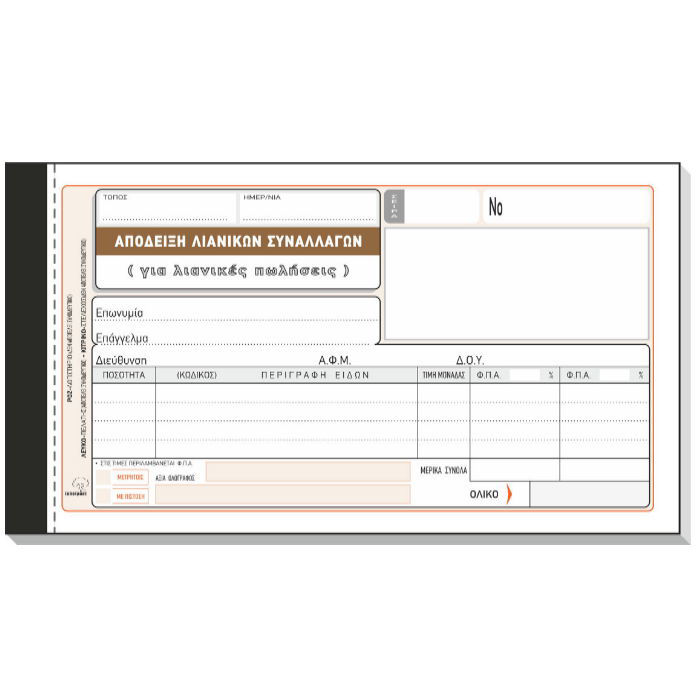 Έντυπο για λιανικές συναλλαγές εμπορευμάτων (με δύο στήλες ΦΠΑ)