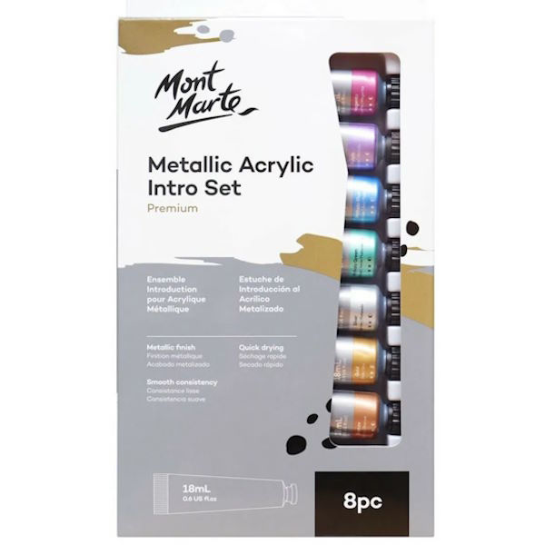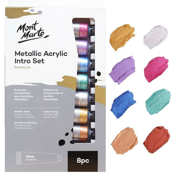 Τα μεταλλικά ακρυλικά χρώματα Mont Marte είναι μια εξαιρετική επιλογή για να προσθέσετε λάμψη και λάμψη στα έργα τέχνης και χειροτεχνίας σας. Αυτό το σετ 8 πανέμορφων χρωμάτων διαθέτει πολυτελή μεταλλική γυαλάδα και είναι κατάλληλο για μια σειρά επιφανειών όπως καμβάς, χαρτόνι και ξύλο. Θα λατρέψετε την ομαλή συνοχή και το εντυπωσιακό φινίρισμα αυτών των μεταλλικών ακρυλικών χρωμάτων. Προσφέρουν επίσης καλή κάλυψη και στεγνώνουν γρήγορα, καθιστώντας τα κατάλληλα για χρήση στο σπίτι ή στην τάξη. Κάντε τα έργα σας να ξεχωρίζουν με το σετ μεταλλικών ακρυλικών χρωμάτων 8 τεμαχίων.
