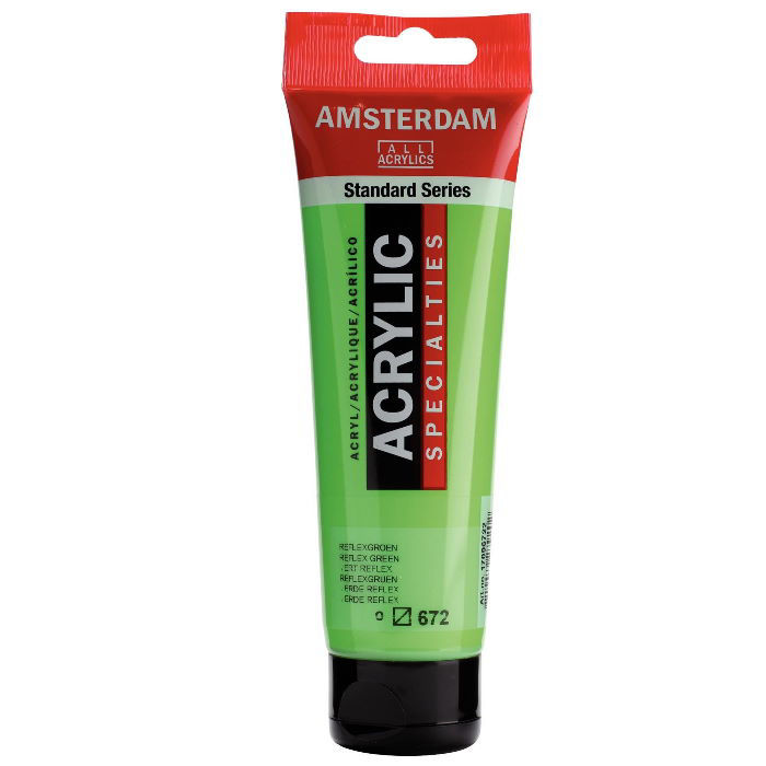 Πολύ καλής ποιότητας ακρυλικά χρώματα Amsterdam σε μορφή πάστας του Ολλανδικού Οίκου Talens, το φιλμ σατινέ χρώματος παραμένει εύκαμπτο και εμποδίζει τη δημιουργία ρωγμών. Τα ακρυλικά μας κατασκευάζονται με βάση ένα 100% ακρυλικό γαλάκτωμα και χρωστικές υψηλής ποιότητας. Είναι πρακτικά άοσμα και ακόμη και σε παχιές στρώσεις, η μεμβράνη βαφής παραμένει εύκαμπτη και αποτρέπει το ράγισμα. Το κρεμώδες μεσαίο ιξώδες διατηρεί τις πινελιές και τις υφές, αλλά μπορεί επίσης να χρησιμοποιηθεί για ευκολότερη ομαλή κάλυψη.