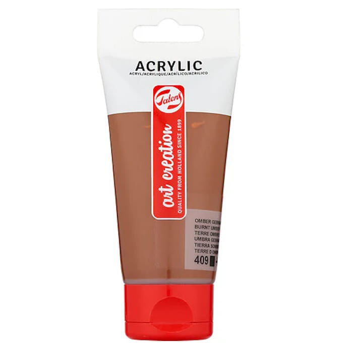 Το ακρυλικό χρώμα Acrylic Art Creation της Talens στην απόχρωση 409 Permanent Burnt Umber είναι ένα κλασικό, βαθύ καφέ με θερμούς υποτόνους, απαραίτητο για κάθε παλέτα.