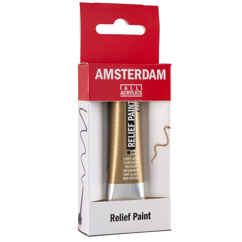 Το ανάγλυφο χρώμα Amsterdam σε ανοιχτό χρυσό (802) είναι ένα αδιαφανές χρώμα με εξαιρετική αντοχή στο φως (+++).