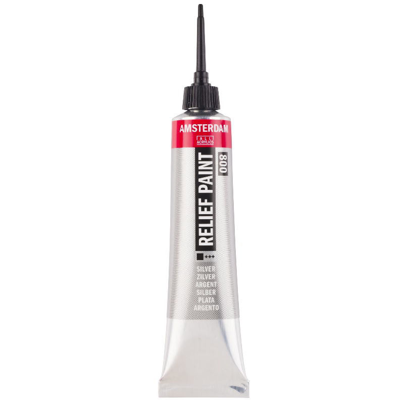 Το ανάγλυφο χρώμα Amsterdam σε ασήμι (800) είναι ένα αδιαφανές χρώμα με εξαιρετική αντοχή στο φως (+++).
