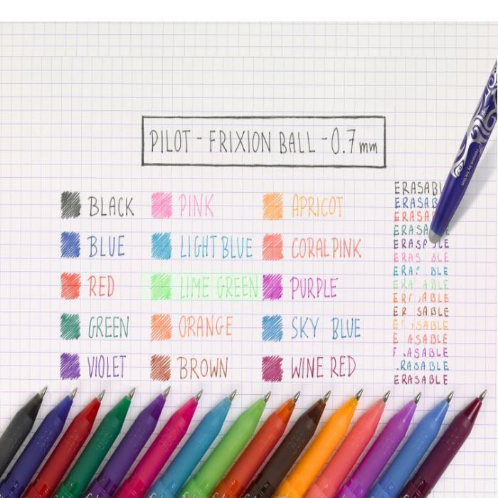 Τo στυλό Frixion ball της Pilot διαθέτει πρωτοποριακή τεχνολογία που σας επιτρέπει να γράψετε, να σβήσετε και να ξαναγράψετε! Το μελάνι που περιέχει, σβήνει με την ειδική γόμα στο πίσω μέρος χωρίς να αφήνει υπολείμματα ή να φθείρει το χαρτί και έτσι μπορείτε να ξαναγράψετε άμεσα στο σημείο που σβήσατε.