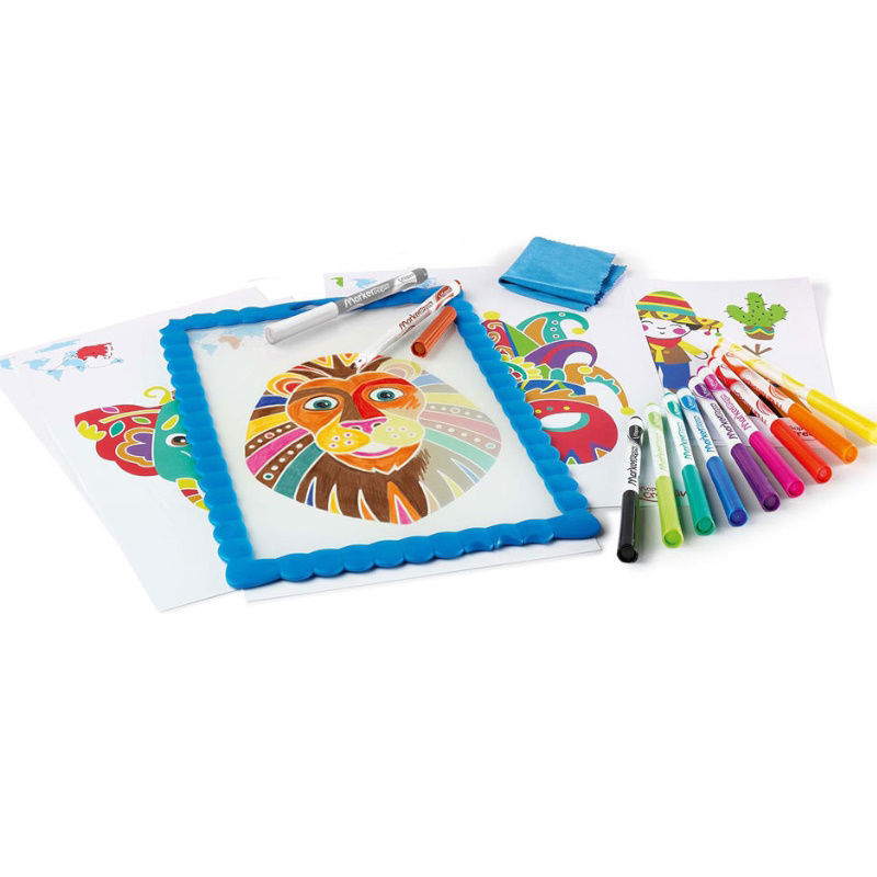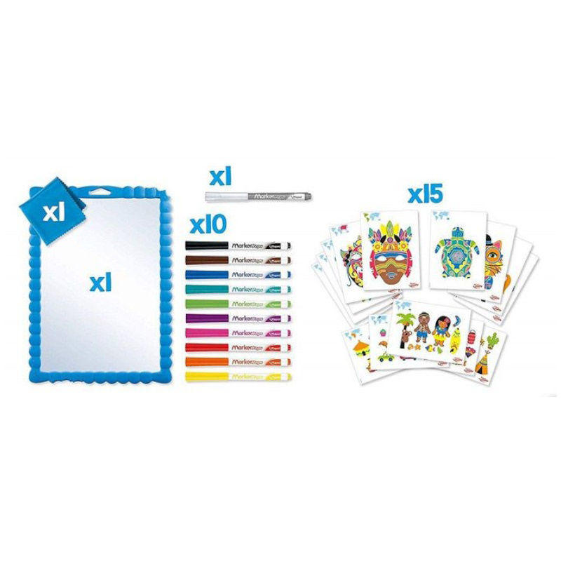1 ταμπλό, 12 ξυλομπογιές, 1 φύλλο με αυτοκόλλητα, 6 σφραγίδες, 1 ταμπόν, 1 φύλλο χαρτί με τα πιάτα για να τα χρωματίσετε, 1 χαρτόνι με αφαιρούμενα μέρη