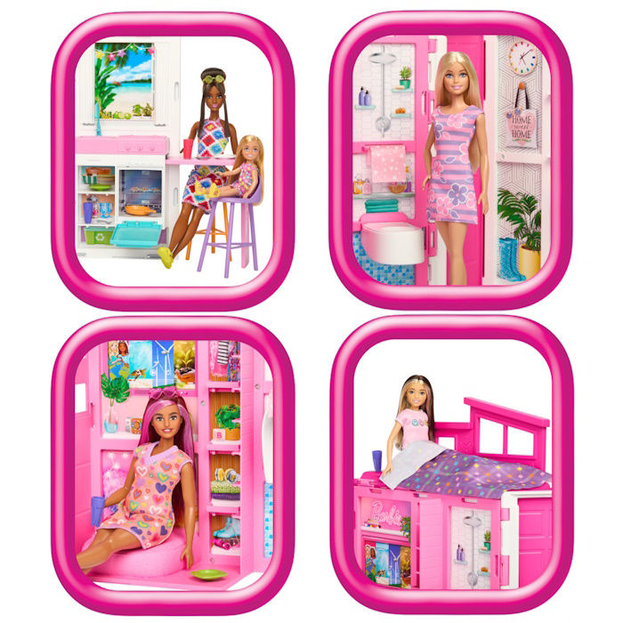 Ανοίγοντάς το, αποκαλύπτεται ένας πολύχρωμος και λειτουργικός χώρος με έπιπλα, κουζίνα, μπάνιο και χώρους ξεκούρασης. Οι μικρές λεπτομέρειες και τα αξεσουάρ της Mattel κάνουν κάθε ιστορία να ζωντανεύει, από το πρωινό καφέ μέχρι τη βραδινή χαλάρωση της Barbie.