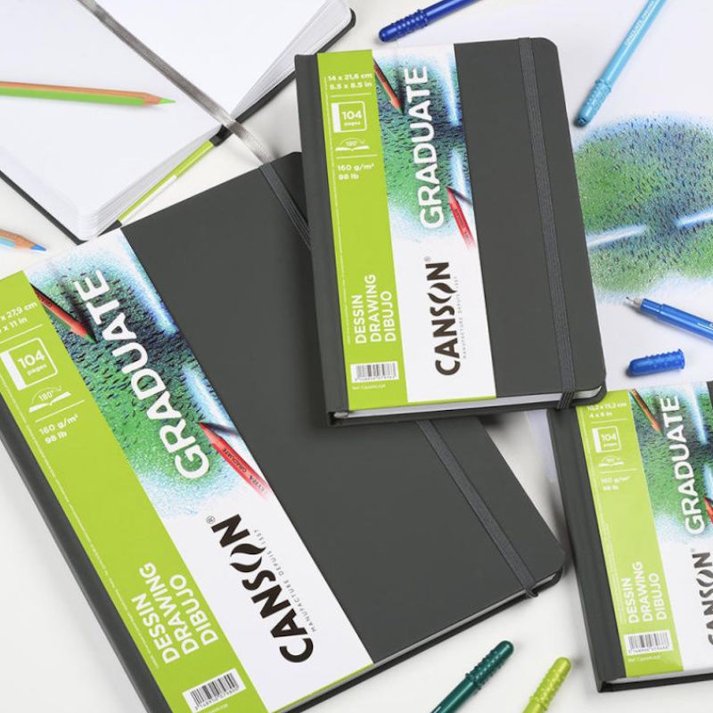 Πολυλειτουργικό και εύκολο στη μεταφορά, το μπλοκ σχεδίασης Canson® Graduate σας επιτρέπει να σχεδιάζετε σε κάθε περίσταση, σε εσωτερικούς ή εξωτερικούς χώρους. Η επίπεδη βιβλιοδεσία του το καθιστά εύκολο στο κράτημα, ενώ οι 104 σελίδες του σας επιτρέπουν να αφήσετε τη φαντασία σας ελεύθερη.