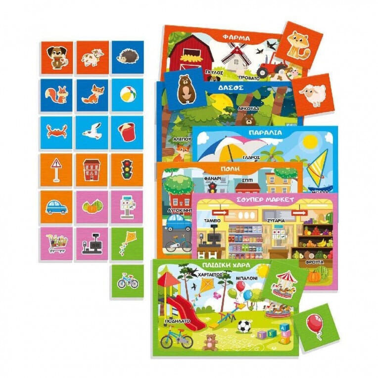 Το παιχνίδι περιλαμβάνει έξι διαφορετικές καρτέλες λεξιλογίου με περιβάλλοντα και πολλές θεματικές κάρτες, ώστε τα παιδιά να συσχετίζουν κάθε ζώο με το σωστό φυσικό του περιβάλλον. Μέσα από αυτή τη διαδικασία ενισχύονται η λογική σκέψη, η σύγκριση και ο εμπλουτισμός του λεξιλογίου, ενώ το παιδί ανακαλύπτει νέες λέξεις με φυσικό και κατανοητό τρόπο.