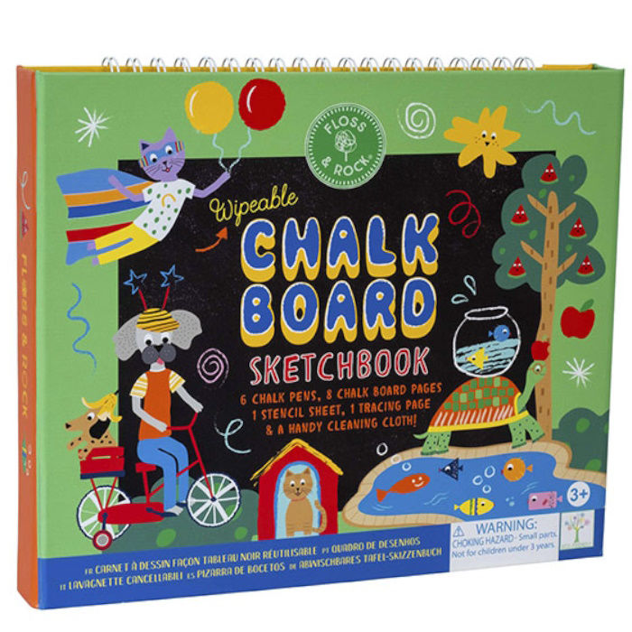 Ένα διασκεδαστικό τετράδιο σκίτσου με μαρκαδόρους κιμωλίας, ιδανικό για μικρούς καλλιτέχνες! Πρόκειται για ένα έξυπνο τετράδιο σκίτσου με κάρτες κιμωλίας, όπου κάθε μία μπορεί να χρωματιστεί με μαρκαδόρους κιμωλίας. Το τετράδιο σκίτσου περιέχει 5 κάρτες με έτοιμες απεικονίσεις για να τις χρωματίσετε και 3 κενές κάρτες όπου μπορείτε να δημιουργήσετε τα δικά σας σχέδια και εικόνες. Υπάρχει επίσης ένα φύλλο χαρτιού ιχνογράφησης και ένα φύλλο στένσιλ με ένα διασκεδαστικό μοτίβο Ζώων. Και τα δύο αυτά φύλλα μπορούν να κολληθούν στο σπιράλ του τετραδίου σκίτσων όπου θέλετε! Περιλαμβάνονται 6 χρωματιστοί μαρκαδόροι κιμωλίας και ένα πανί καθαρισμού για να σκουπίσετε τα φύλλα και να ξεκινήσετε τη δημιουργική διασκέδαση από την αρχή.